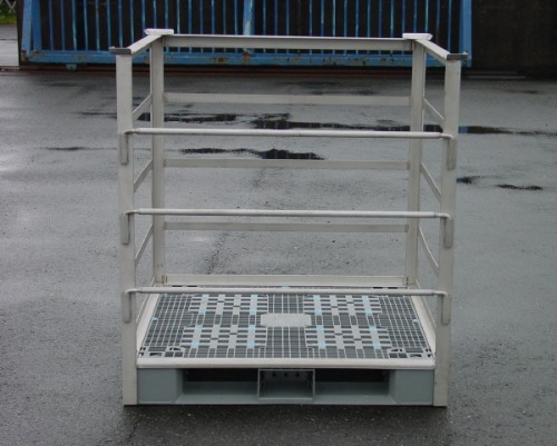 ステンレスフレームと樹脂製パレットを組み合わせた防錆効果のあるコンテナです。