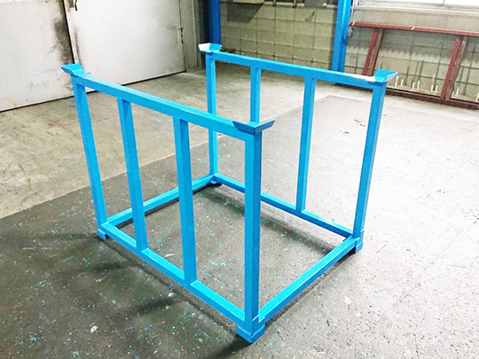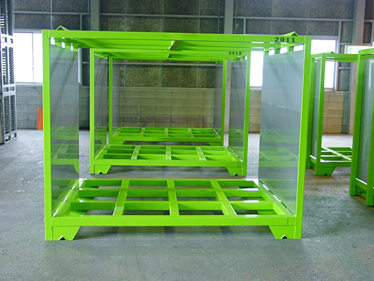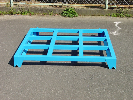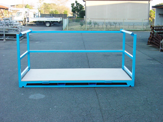 大型の荷物を段積みするための逆テナー。上面には天板を貼りました。