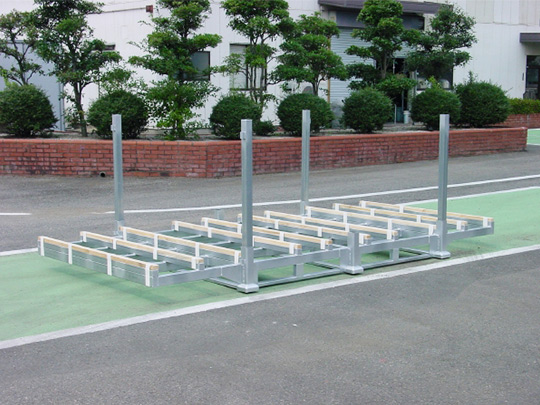 長尺物(パイプや建築資材)をきれいに収納して移動もラクラク。屋外で使用する際は、錆びにくいドブメッキもおすすめです。 | 冷凍棚(亜鉛材/アルミ/ステンレス対応) SUS AL