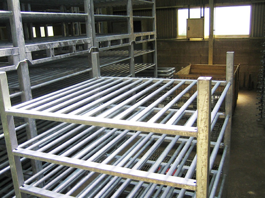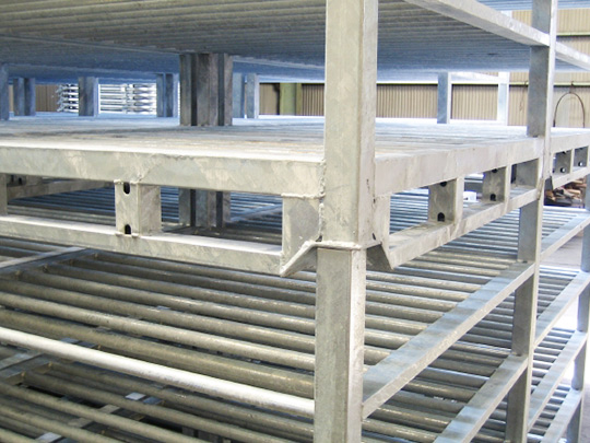 - 海産物などを冷蔵倉庫保管する際、冷気のムラができないように隙間を開けて収納できます。