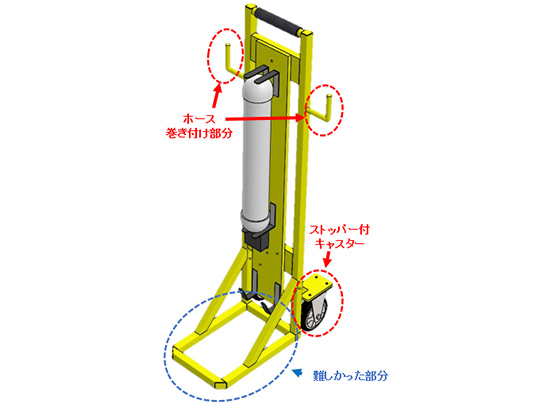 ①ストッパー付キャスターを取付け、移動性・安全性をアップ
