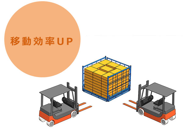 工場内のレイアウトや作業効率を考慮し、全方面からフォークリフトのツメを差せるよう設計しました。